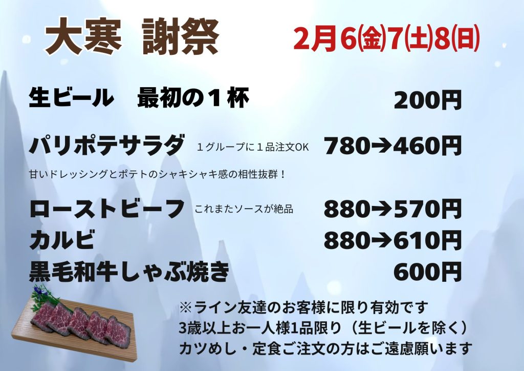 2月6㈮7㈯8㈰大寒謝祭
