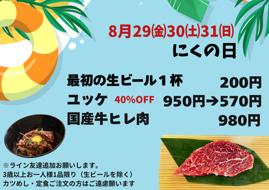 2025年8月29㈮30㈯31㈰限定のクーポンを配信します。