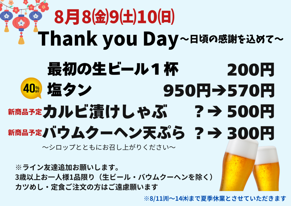 2025年8月8㈮9㈯10㈰限定のクーポンを配信します。